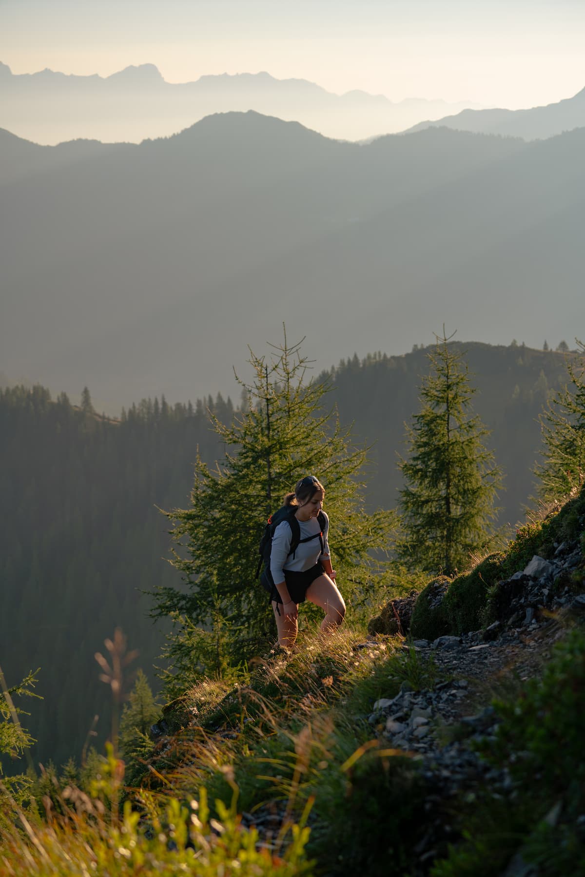 Der Zustieg startet weich über Almgelände, dann zieht sich der Weg hinein in das, was zählt: steiler, ruhiger, alpiner.